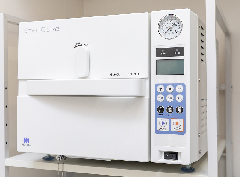 高圧蒸気滅菌器(オートクレーブ)を用いて、治療機器の細部まで徹底的に滅菌を行っています。