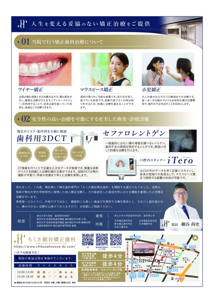名古屋市東区葵に新規開院いたします「ちくさ細谷矯正歯科」 院長の細谷尚史です。